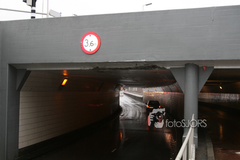 21-01-2009 Vachtwagen te hoog bij de Maastunnel