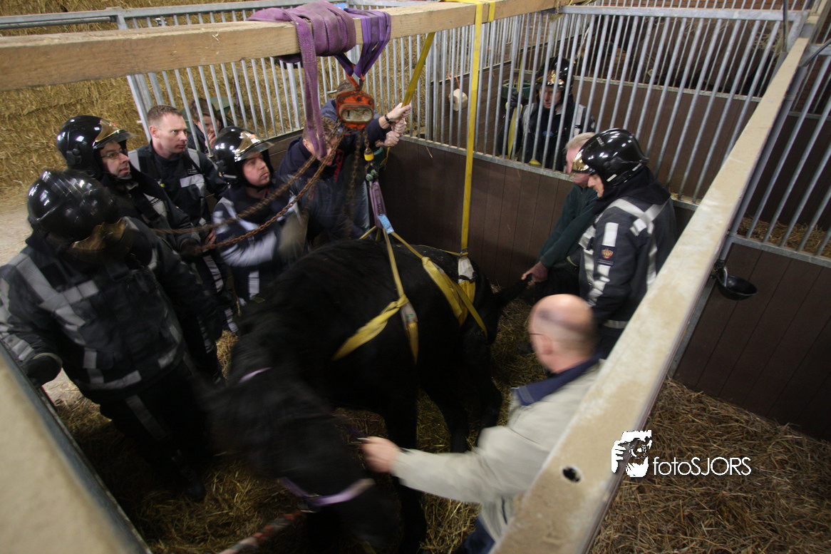 18-01-2010 Brandweer zet een paard op zijn benen aan de Omloopseweg te Rhoon