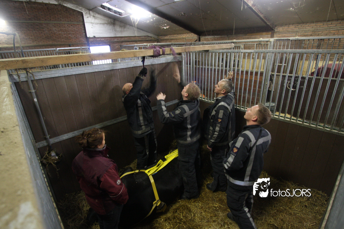 18-01-2010 Brandweer zet een paard op zijn benen aan de Omloopseweg te Rhoon