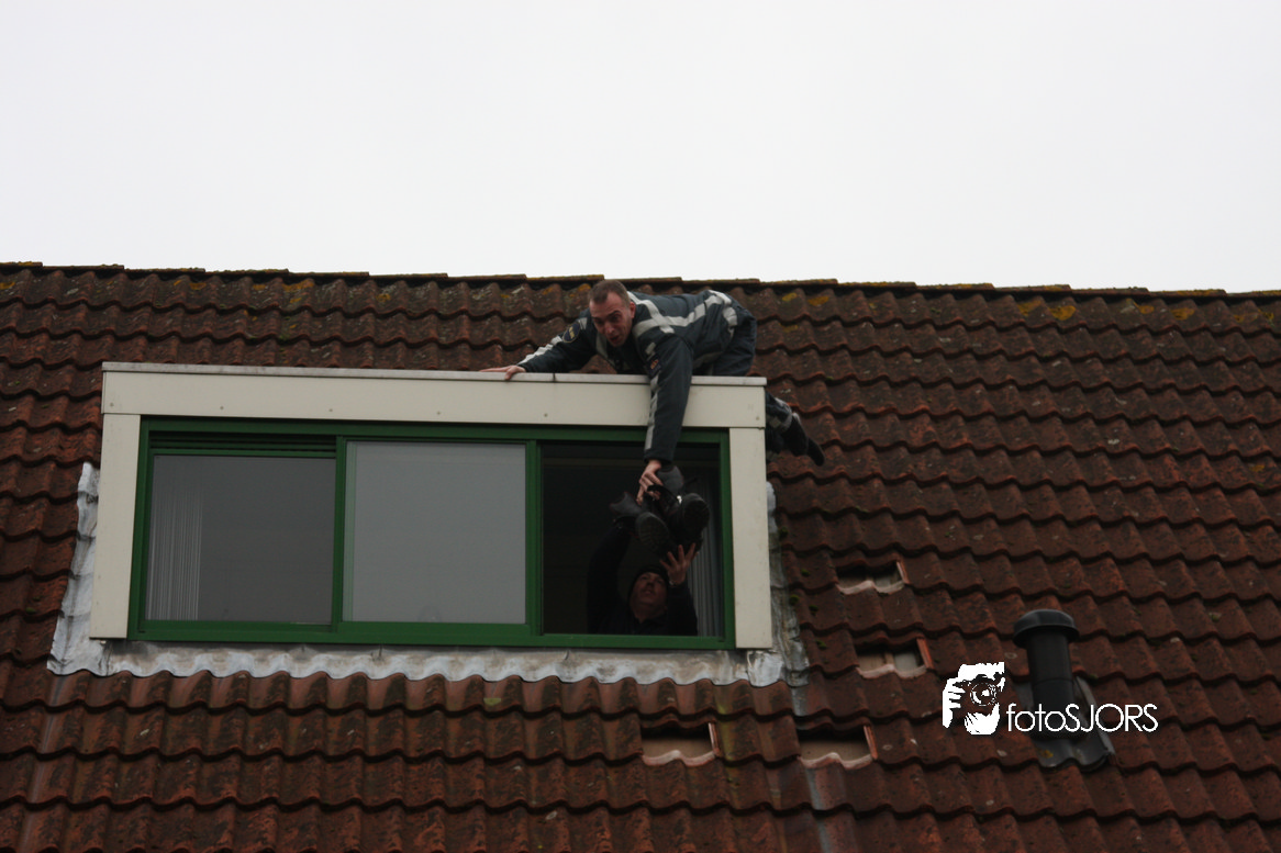 23-01-2010 Brandweer redt 2 poesen van het dak aan het Nachtwaker in Rhoon -