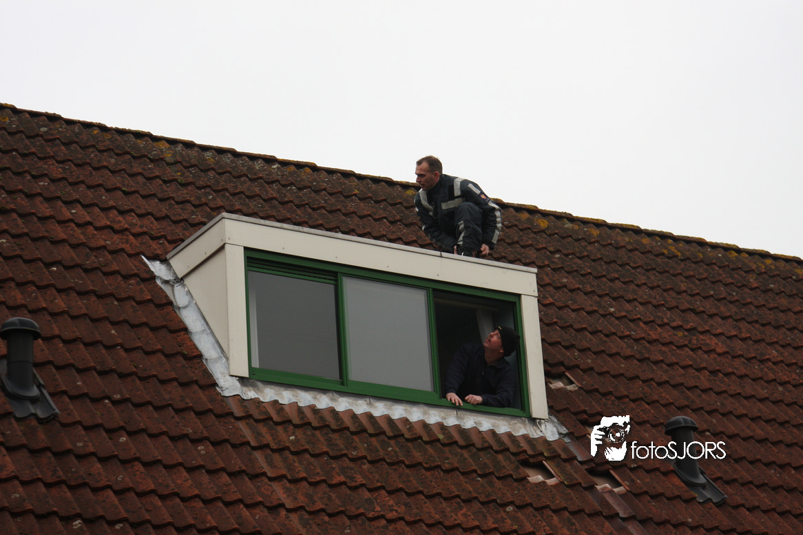 23-01-2010 Brandweer redt 2 poesen van het dak aan het Nachtwaker in Rhoon -