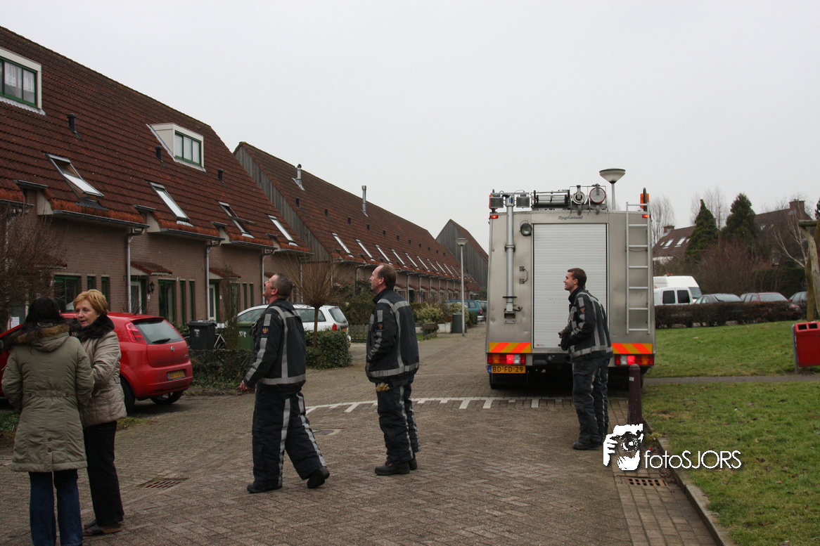 23-01-2010 Brandweer redt 2 poesen van het dak aan het Nachtwaker in Rhoon -