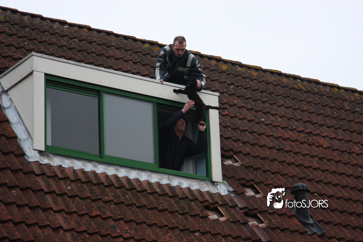 23-01-2010 Brandweer redt 2 poesen van het dak aan het Nachtwaker in Rhoon -