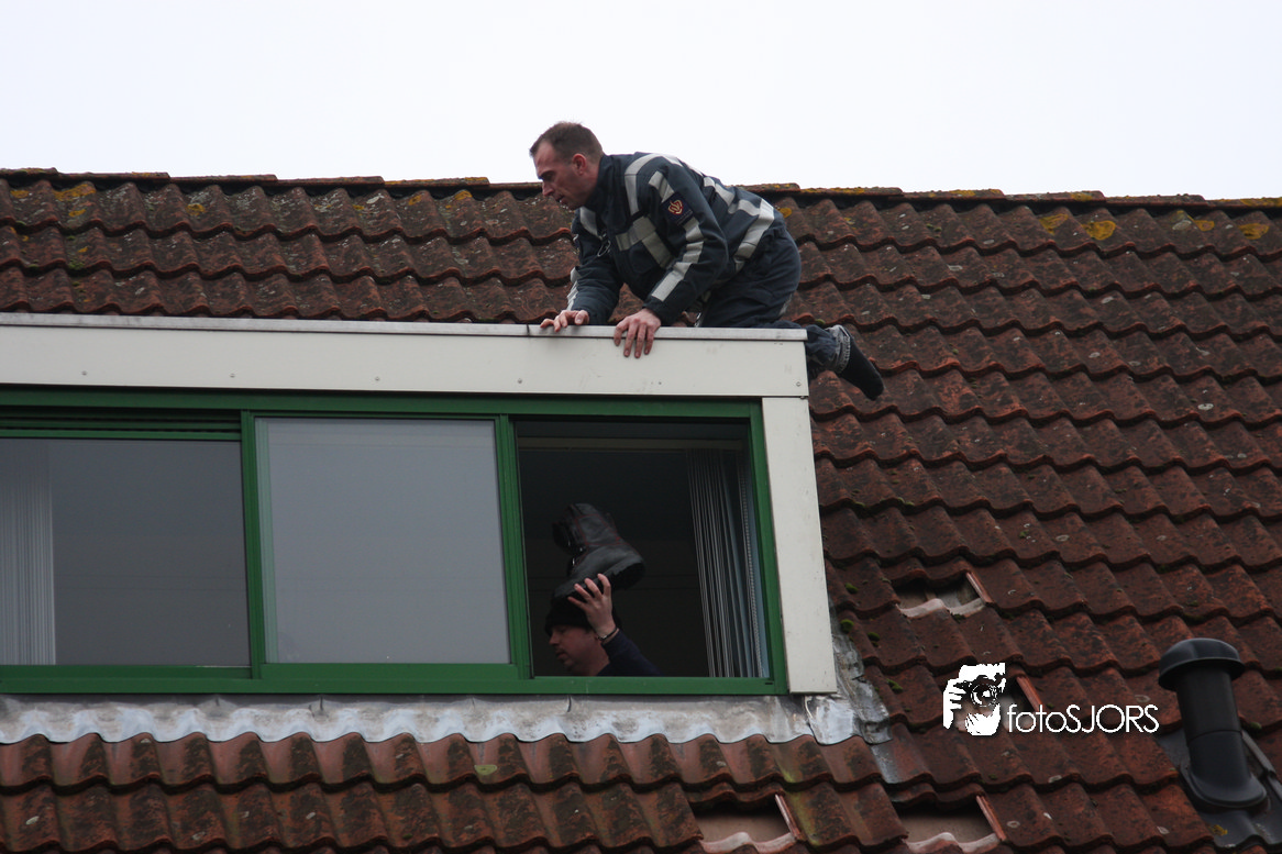 23-01-2010 Brandweer redt 2 poesen van het dak aan het Nachtwaker in Rhoon -