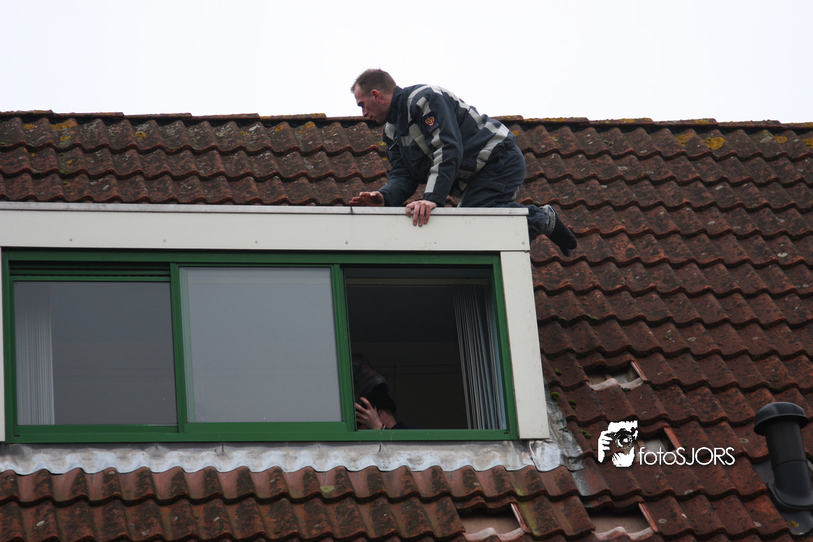 23-01-2010 Brandweer redt 2 poesen van het dak aan het Nachtwaker in Rhoon -