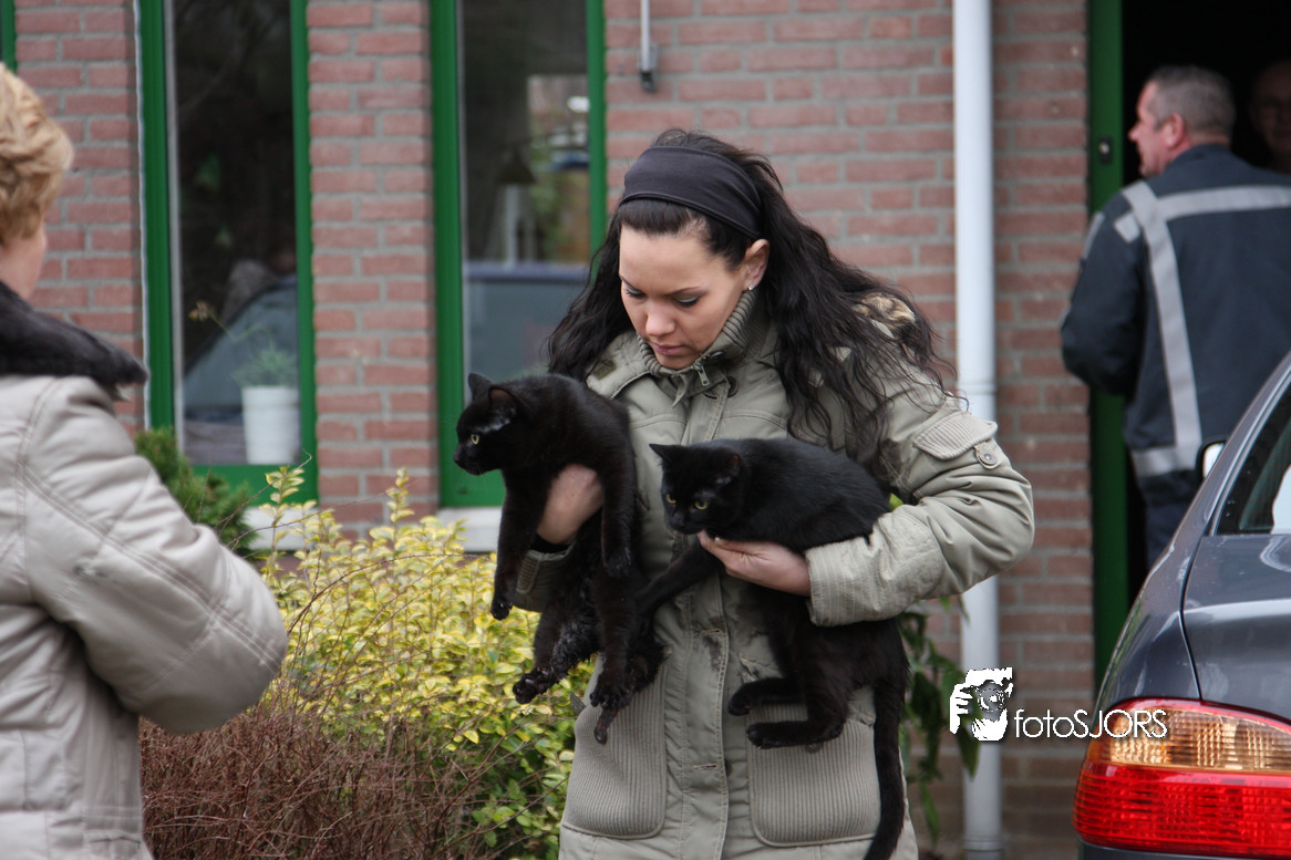 23-01-2010 Brandweer redt 2 poesen van het dak aan het Nachtwaker in Rhoon -