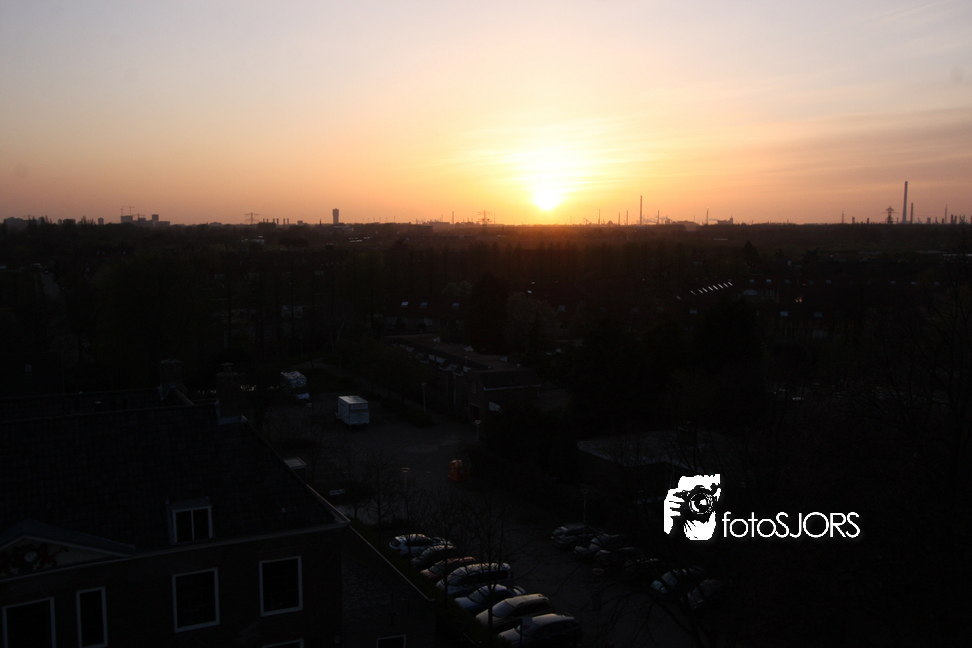 Zonsondergang in Rhoon vanaf het wapen en kerk 15-4-2010
