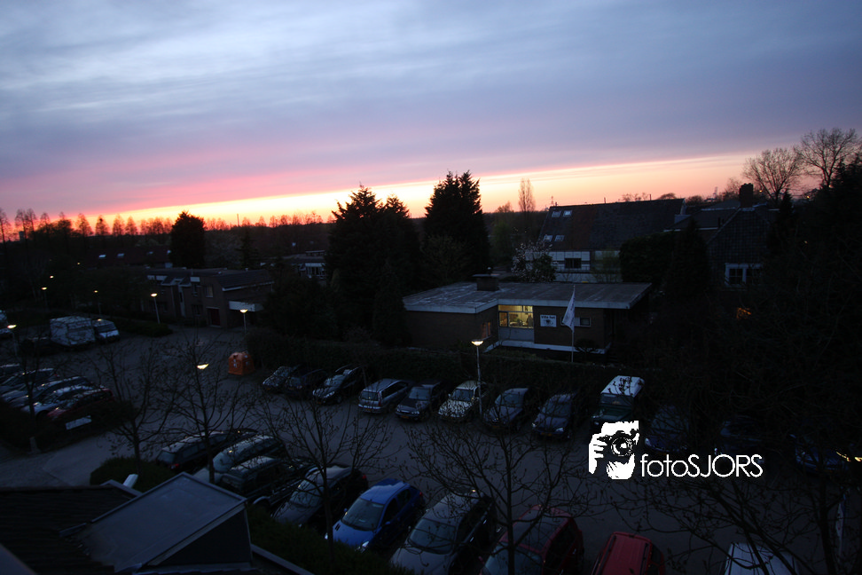 Zonsondergang in Rhoon vanaf het wapen en kerk 15-4-2010