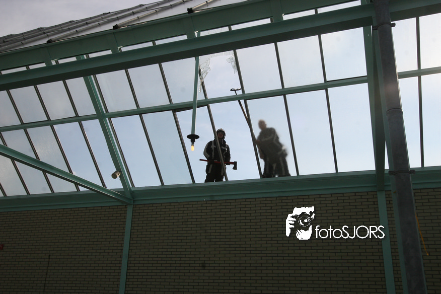14-05-2010 - Brandweer haalt gevaarlijk loshangende glasplaten weg