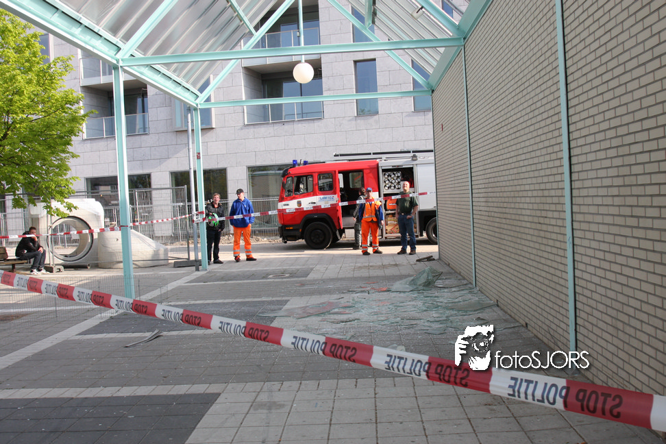 14-05-2010 - Brandweer haalt gevaarlijk loshangende glasplaten weg