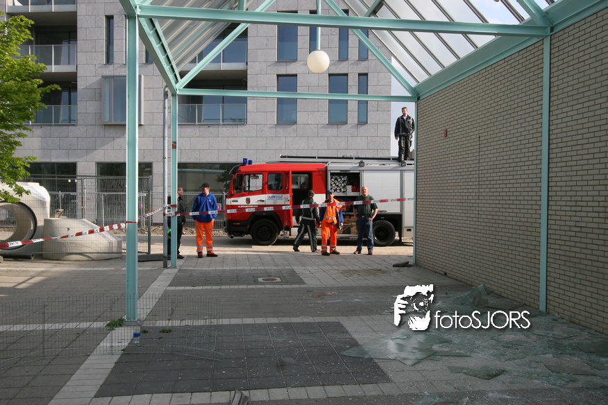 14-05-2010 - Brandweer haalt gevaarlijk loshangende glasplaten weg