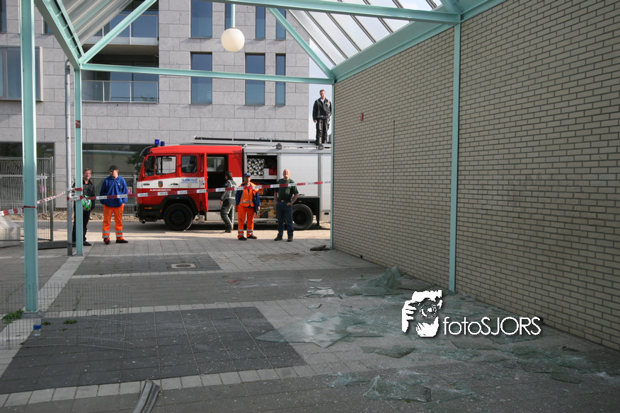 14-05-2010 - Brandweer haalt gevaarlijk loshangende glasplaten weg
