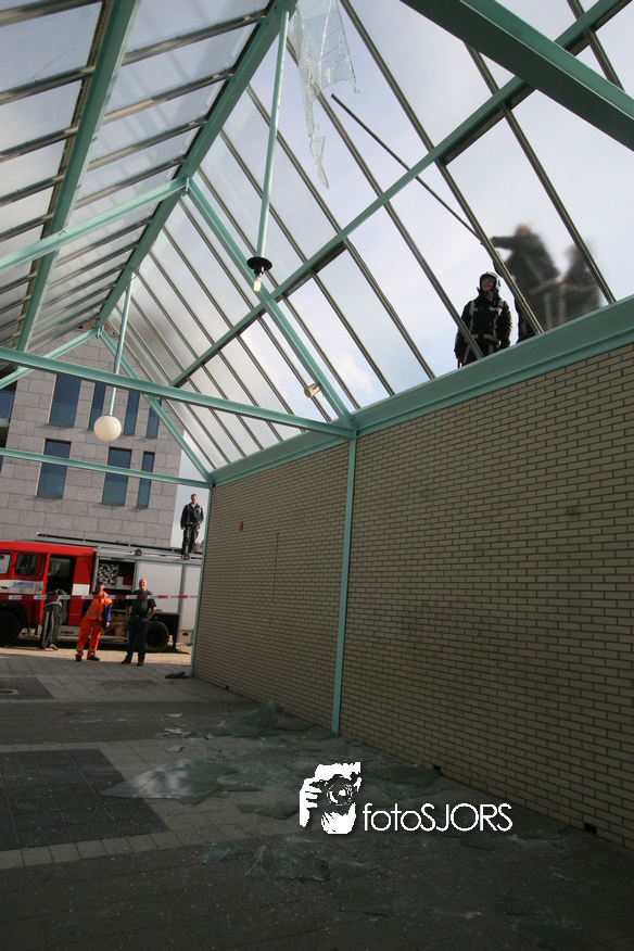 14-05-2010 - Brandweer haalt gevaarlijk loshangende glasplaten weg