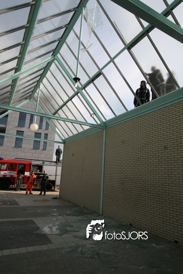 14-05-2010 - Brandweer haalt gevaarlijk loshangende glasplaten weg