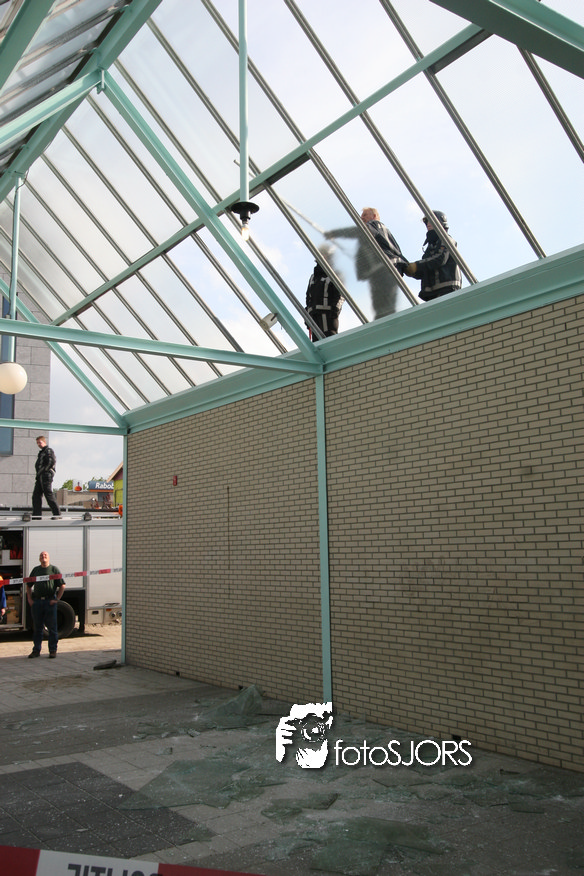 14-05-2010 - Brandweer haalt gevaarlijk loshangende glasplaten weg