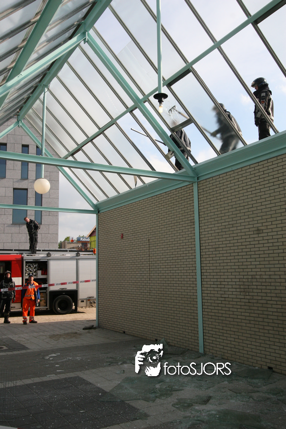 14-05-2010 - Brandweer haalt gevaarlijk loshangende glasplaten weg