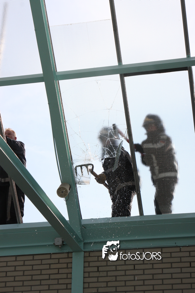 14-05-2010 - Brandweer haalt gevaarlijk loshangende glasplaten weg