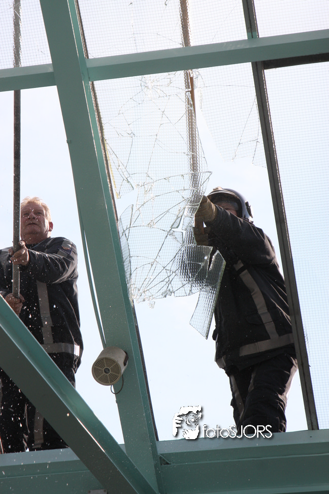 14-05-2010 - Brandweer haalt gevaarlijk loshangende glasplaten weg