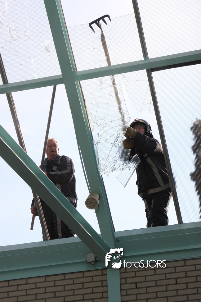 14-05-2010 - Brandweer haalt gevaarlijk loshangende glasplaten weg