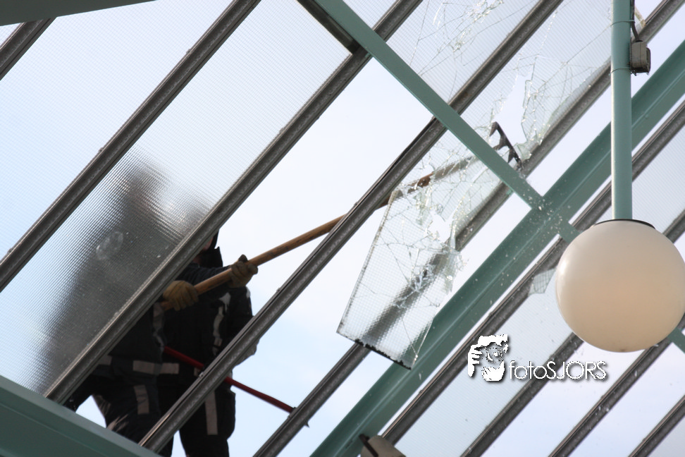 14-05-2010 - Brandweer haalt gevaarlijk loshangende glasplaten weg