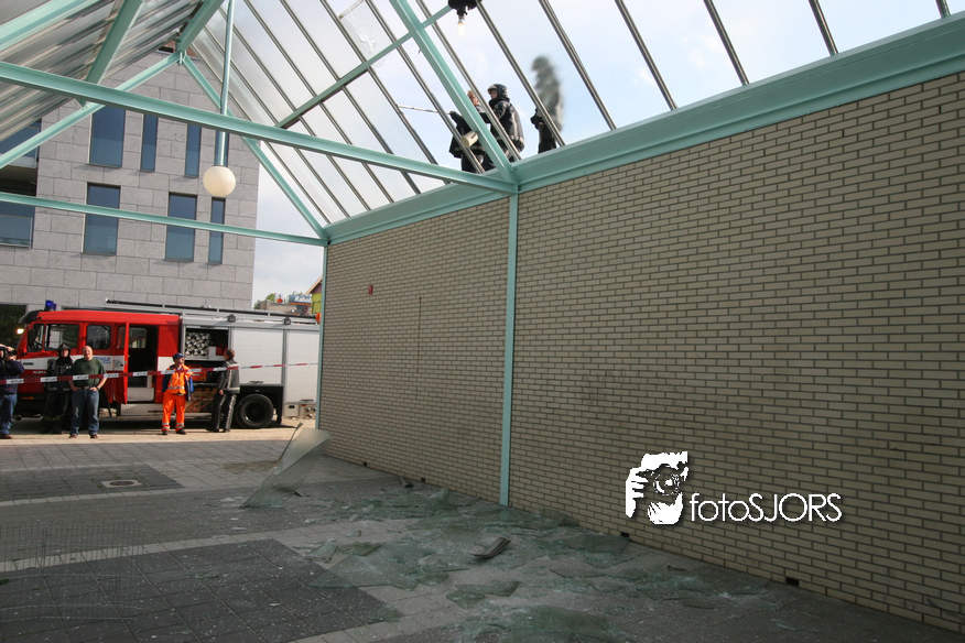14-05-2010 - Brandweer haalt gevaarlijk loshangende glasplaten weg