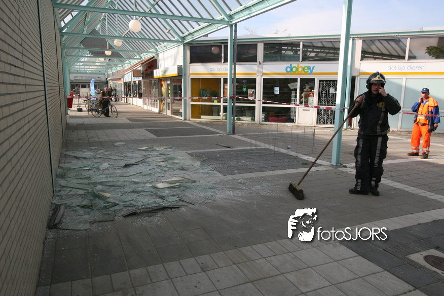 14-05-2010 - Brandweer haalt gevaarlijk loshangende glasplaten weg