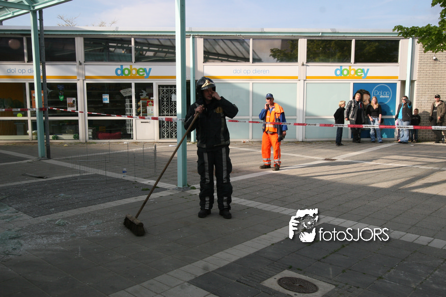 14-05-2010 - Brandweer haalt gevaarlijk loshangende glasplaten weg