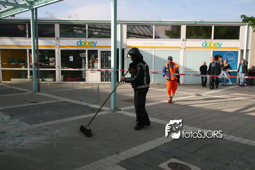 14-05-2010 - Brandweer haalt gevaarlijk loshangende glasplaten weg