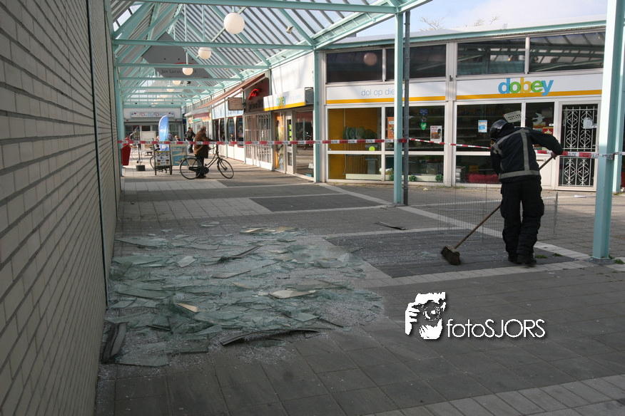 14-05-2010 - Brandweer haalt gevaarlijk loshangende glasplaten weg