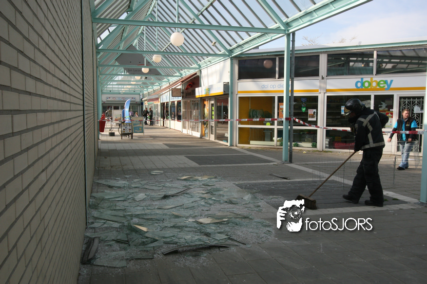 14-05-2010 - Brandweer haalt gevaarlijk loshangende glasplaten weg