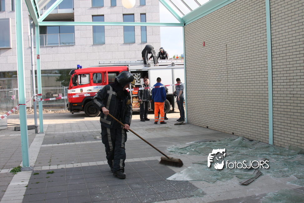 14-05-2010 - Brandweer haalt gevaarlijk loshangende glasplaten weg