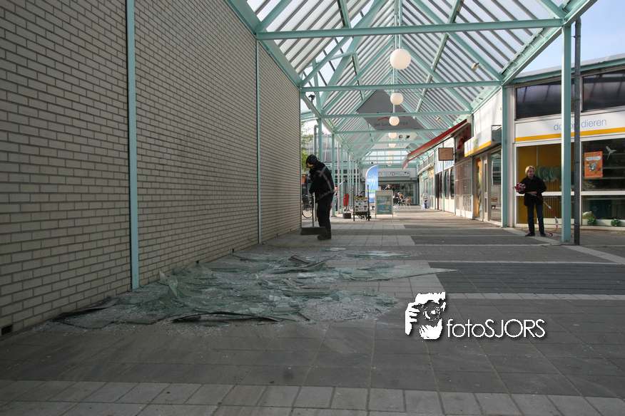 14-05-2010 - Brandweer haalt gevaarlijk loshangende glasplaten weg