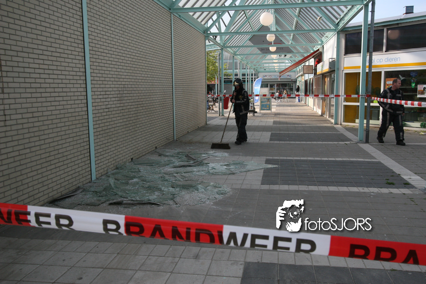 14-05-2010 - Brandweer haalt gevaarlijk loshangende glasplaten weg