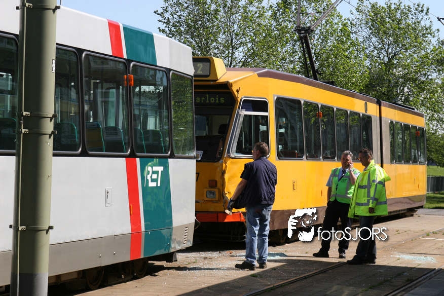 Brielselaan bij de Wolphaertsbocht is een tram tegen een andere tram gebotst 16-6-2010
