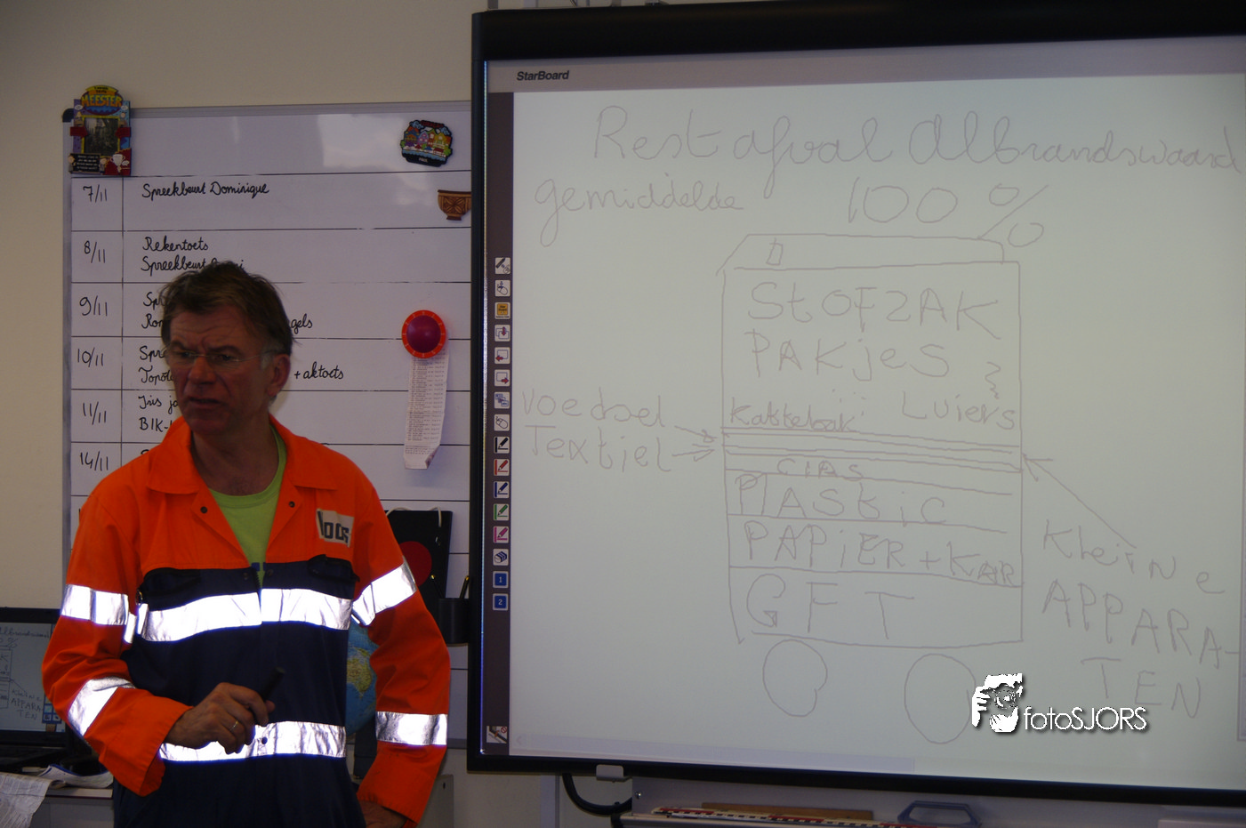 03-11-2011 Vuilnisman Koos geeft recycling les