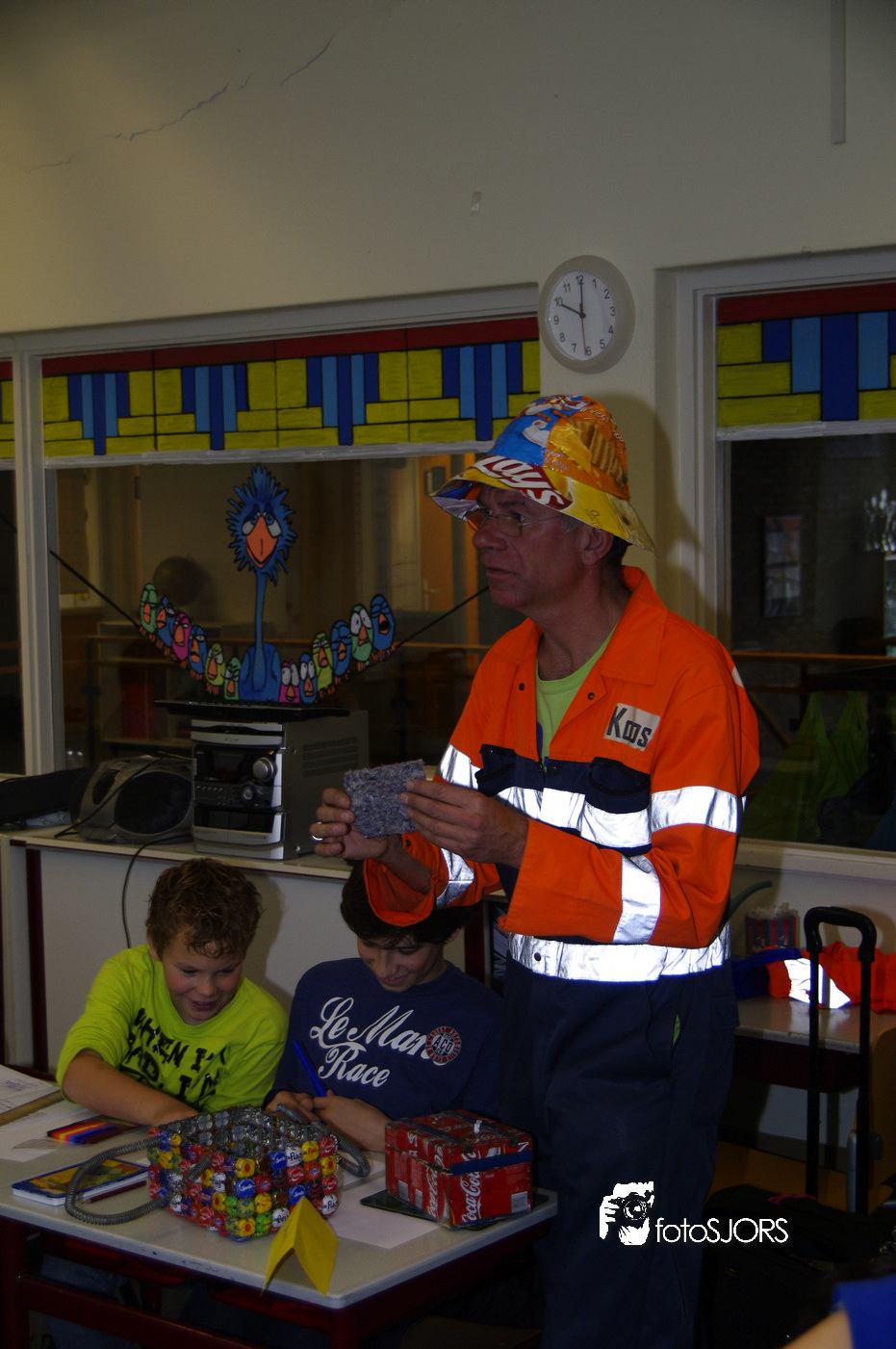 03-11-2011 Vuilnisman Koos geeft recycling les