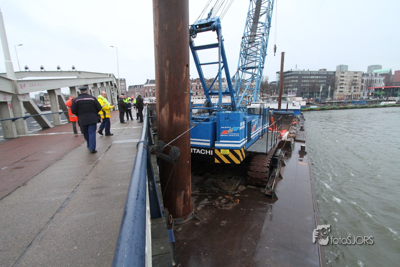 15-03-2013 Losgeslagen schip ramt Koningebrug Rotterdam