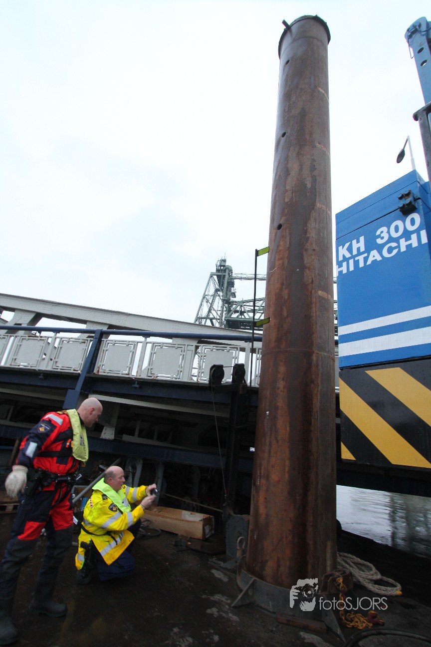 15-03-2013 Losgeslagen schip ramt Koningebrug Rotterdam