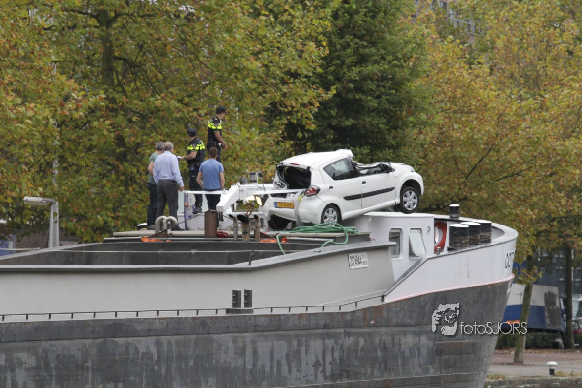 02-10-2014 Flinke schade aan auto, door schip die Beukelsbrug ramt
