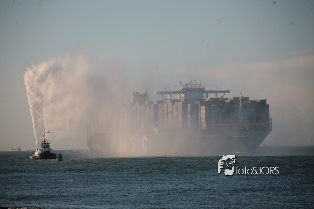 03-03-2015 - Grootste Containerschip ter wereld MSC Oscar vaart Nederland binnen