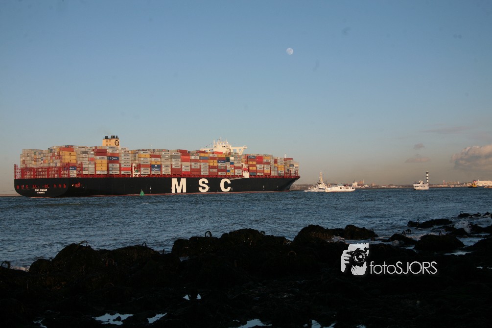 03-03-2015 - Grootste Containerschip ter wereld MSC Oscar vaart Nederland binnen