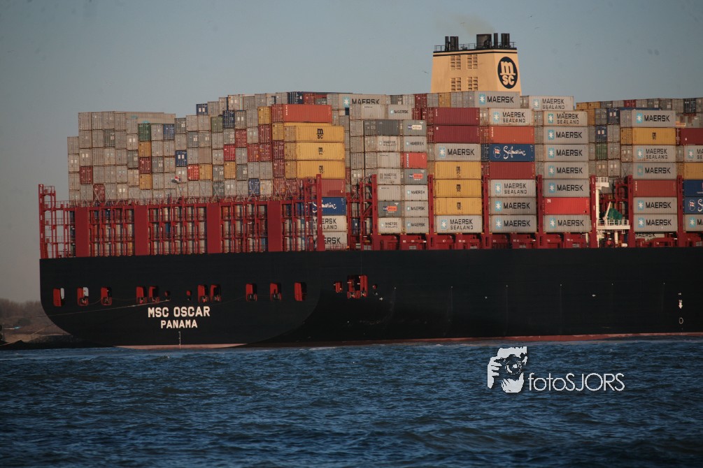 03-03-2015 - Grootste Containerschip ter wereld MSC Oscar vaart Nederland binnen