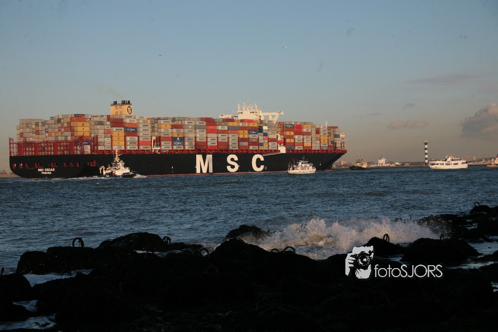 03-03-2015 - Grootste Containerschip ter wereld MSC Oscar vaart Nederland binnen