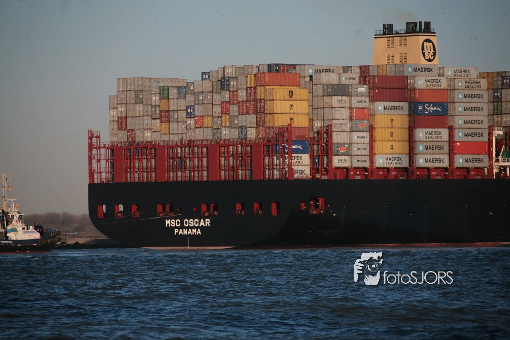 03-03-2015 - Grootste Containerschip ter wereld MSC Oscar vaart Nederland binnen