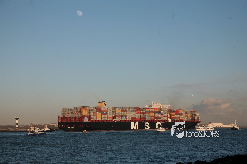 03-03-2015 - Grootste Containerschip ter wereld MSC Oscar vaart Nederland binnen