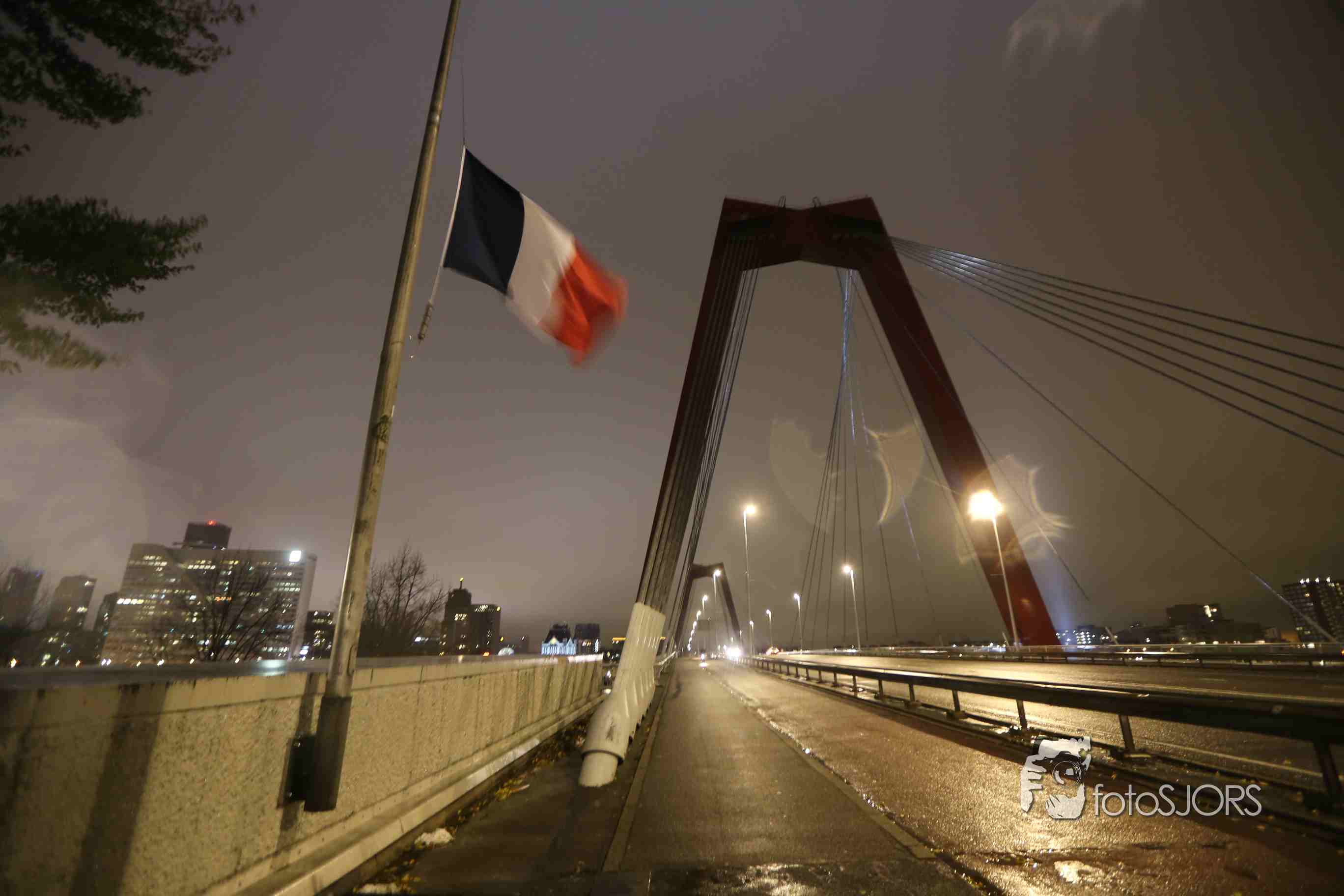 14-11-2015 - Erasmusbrug kleurt als Franse vlag