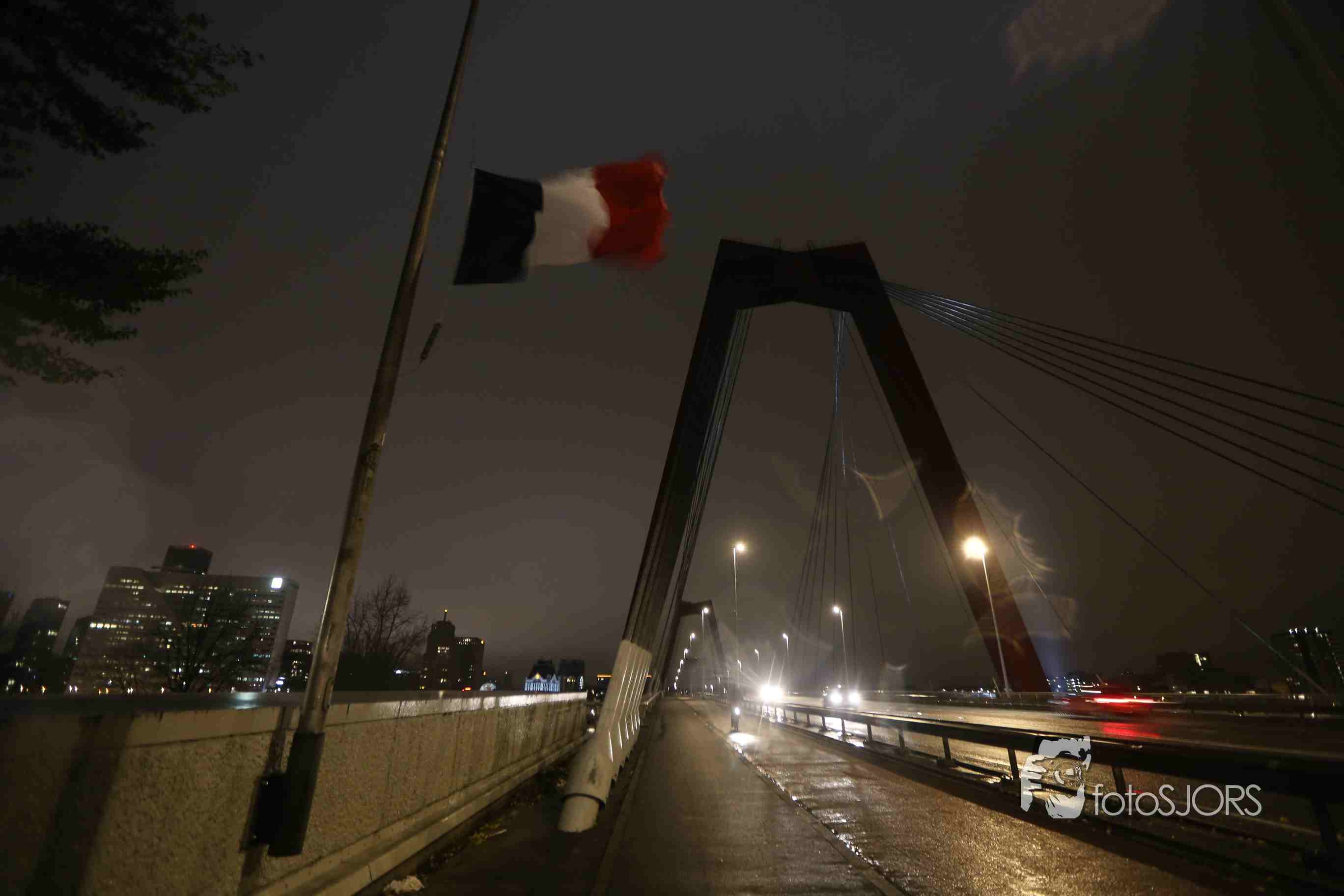 14-11-2015 - Erasmusbrug kleurt als Franse vlag