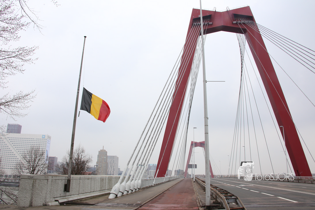 24-03-2016 - Rotterdam hijst belgische vlag halfstok