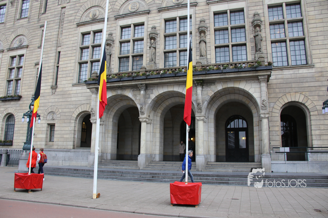24-03-2016 - Rotterdam hijst belgische vlag halfstok