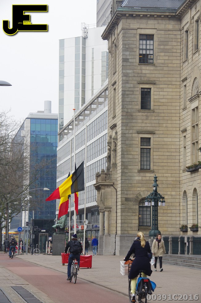 24-03-2016 - Rotterdam hijst belgische vlag halfstok van John